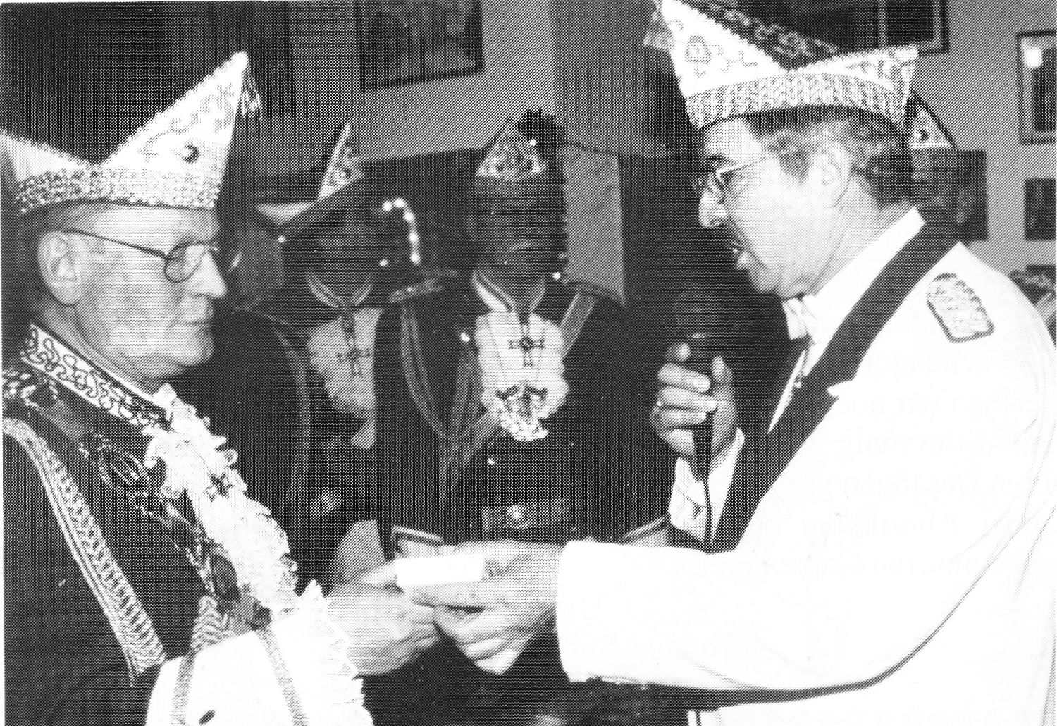 Präsident Manfred Macherey und Hans Hamacher wurden vom Vizepräsidenten Herbert Flohsdorf für 50jährige Mitgliedschaft mit einer goldenen Taschenuhr (mit Widmung) und einer Urkunde geehrt.