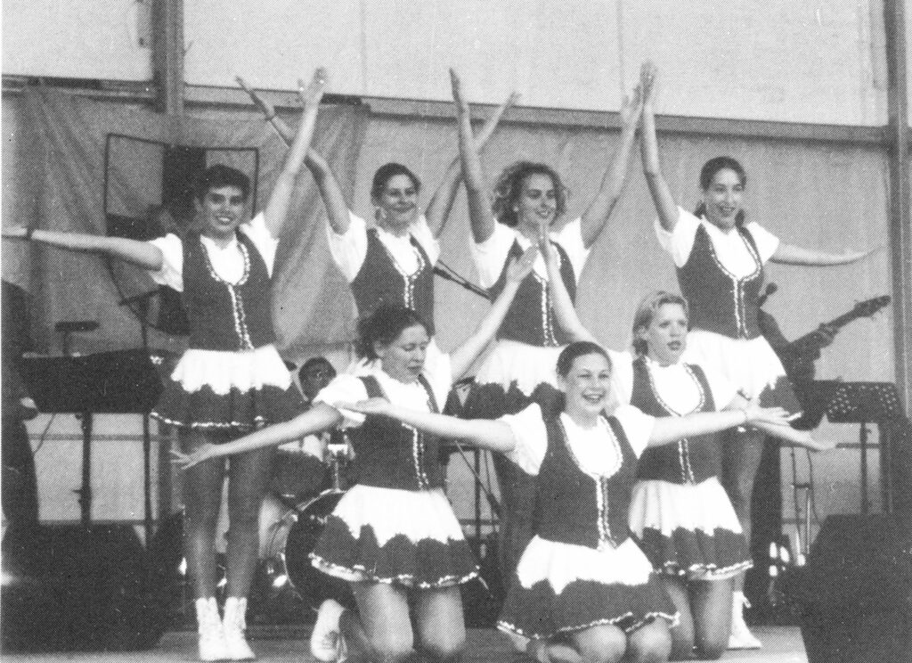 Anfangs in eigenen bunten Kostümen, später in von uns zur Verfügung gestellten rot-weißen Kostümen.